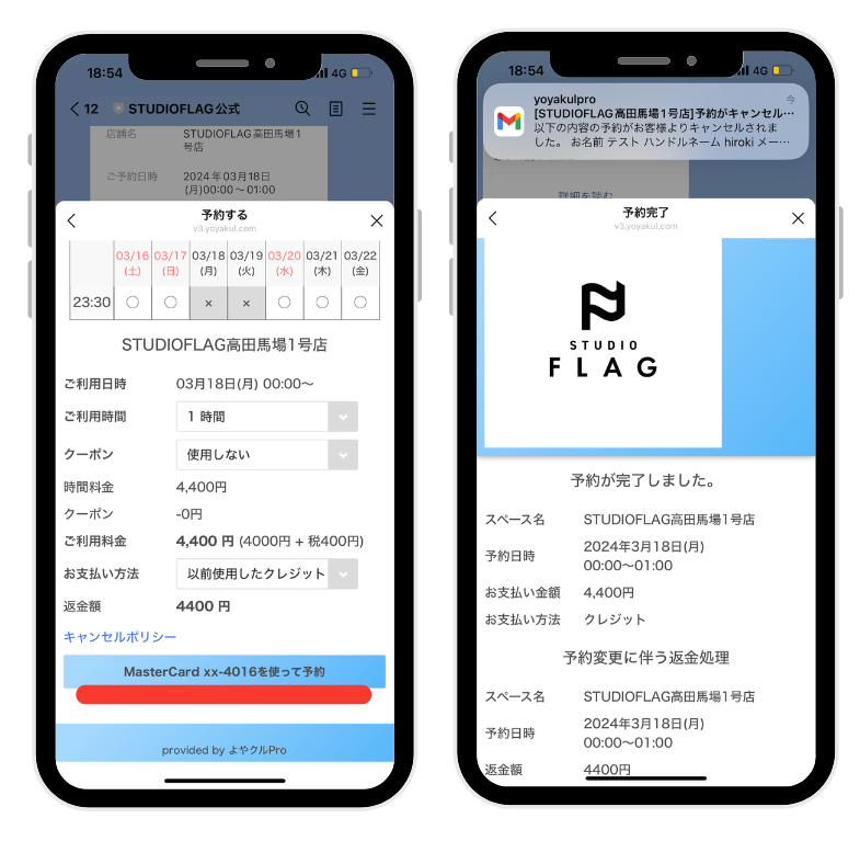 案内は次の予約があったり、営業時間外が確定していたりする場合でも、延長案内の通知は一律全てのご予約に届きます。必ず延長できるとは限りませんのでお気をつけくださいませ。
