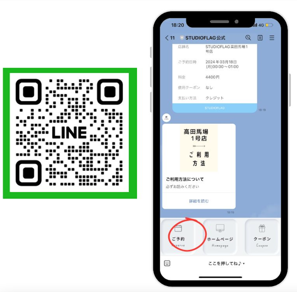 当スタジオは公式LINEを使い予約、空き状況確認、お問い合わせなど全てを行います。